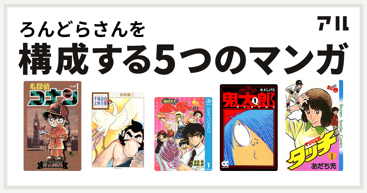 ろんどらさんを構成するマンガは名探偵コナン 火の鳥 地獄先生ぬ べ ゲゲゲの鬼太郎 タッチ 私を構成する5つのマンガ アル